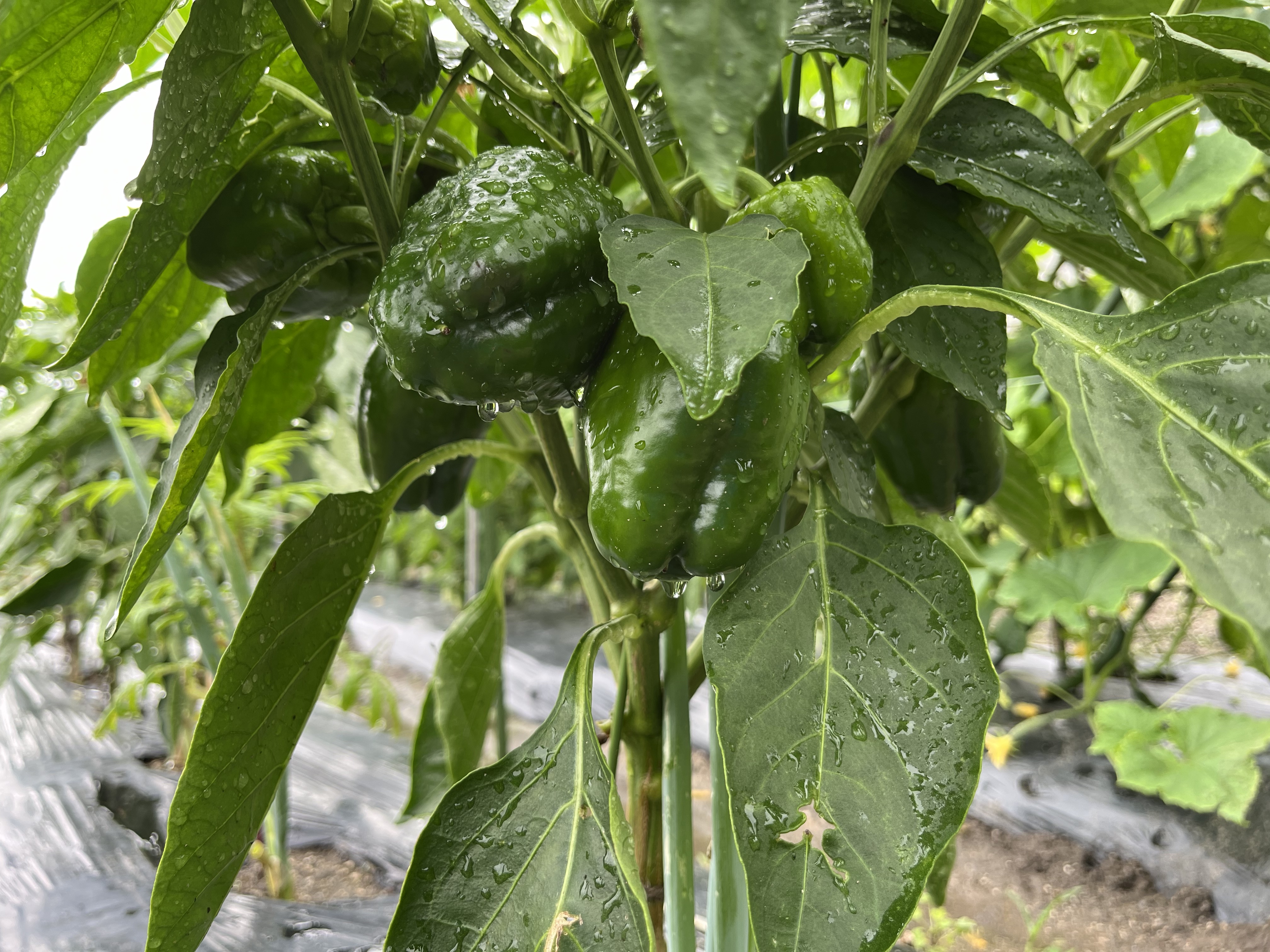 自家農園の「畑の野菜」は、病気・害虫対策としてにんにくと唐辛子を漬け込んだ食用酢だけは使用していますが、その他農薬は一切使用していませんので、安心してお召し上がり頂けます。