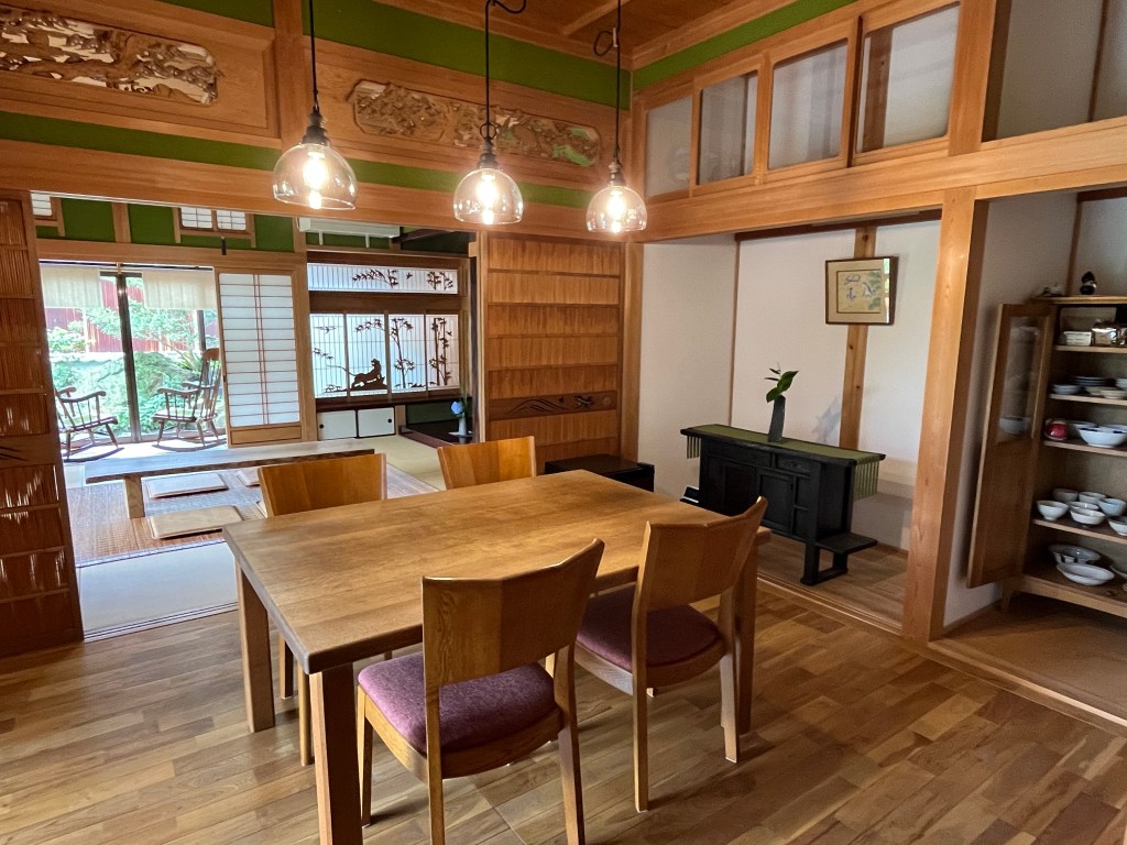咄々々は、1日1組限定の宿。ご夫婦、ご家族、ご友人同士、心安い方々だけで滞在していただける貸し切りの宿です。最良のおもてなしができるのは6名様まで。各寝室の他に、ゆっくり過ごしていただくパーソナルスペースとして、2つのお部屋をご用意しました。板の間はダイニング、お座敷はティーテーブルなどご自由にご利用下さい。
